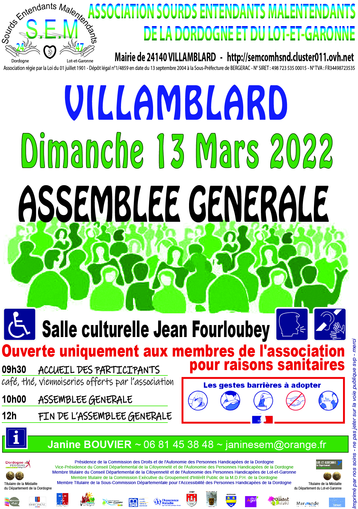 L’association S.E.M. 24-47 a tenu son assemblée générale ordinaire en présentiel à la salle culturelle Jean Fourloubey le dimanche 13 mars 2022.