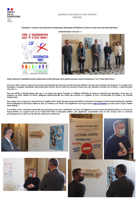 Dans le cadre de la journée internationale des femmes, la préfecture de la Dordogne a organisé un concours sur le thème :« Discrimination c’est non ! »