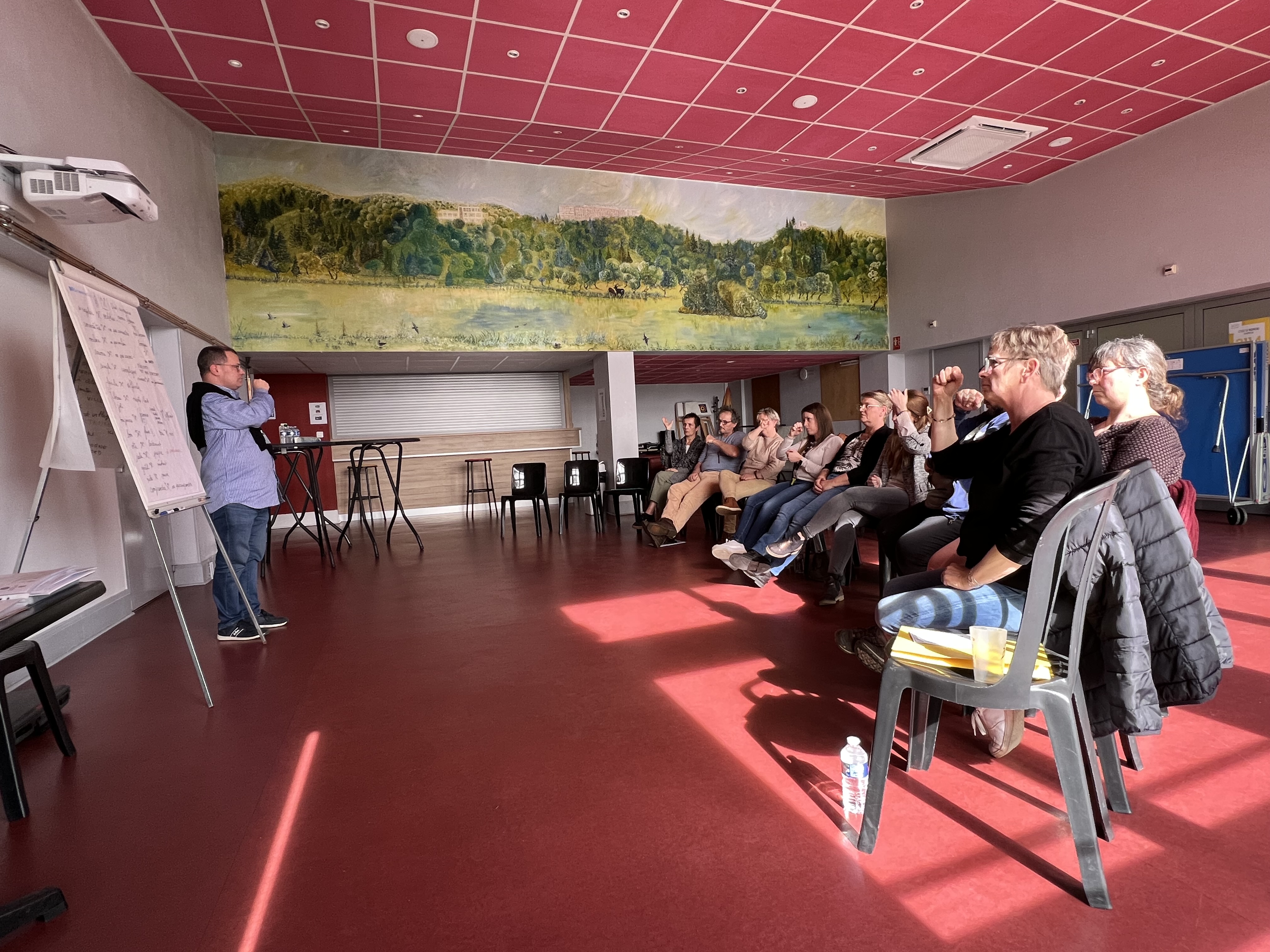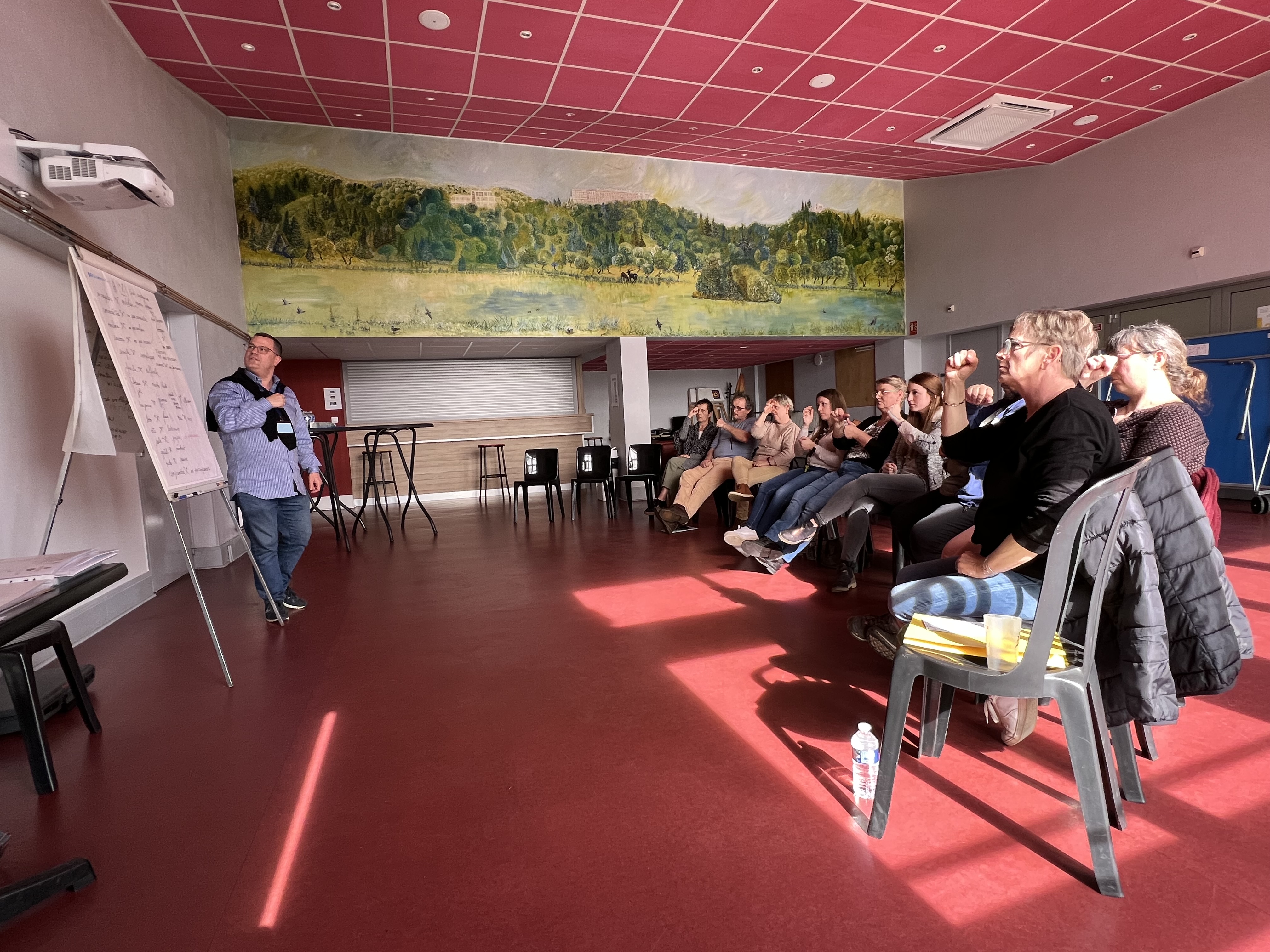 7ème séance d’initiation de base à la Langue des Signes Française dispensée par Philippe à un groupe du personnel de la Cité de Clairvivre à SALAGNAC.